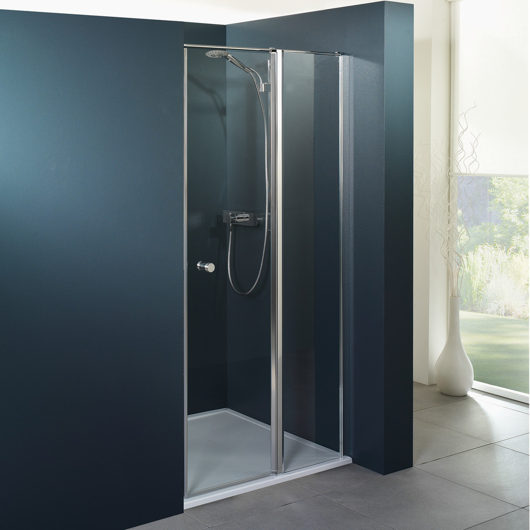 Glas 6 mm ESG, Standardhöhe 200 cm plus 3 cm Rundrohrbügel Ø 1,4 cm, Tür öffnet nach Innen und Außen, PALM.fix, PALM.free, PALM.lift, PALM.isi-clean, optional: PALM.nano, PALM.care