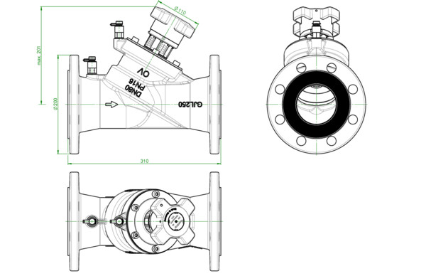 Oventrop Strangregulierventil Hydrocontrol VFC DN 80, PN 16, Flanschanschluss, Grauguss
