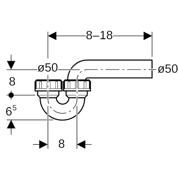 Geberit Rohrbogengeruchsverschluss DN 50/50, Einlauf vertikal, Abgang horizontal, PE-HD, schwarz W346313