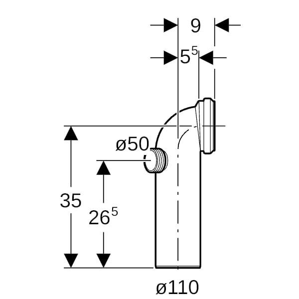 Geberit WC-Anschlussbogen 90Grad, 110mm, PP, weiß, Zusatzanschluss links