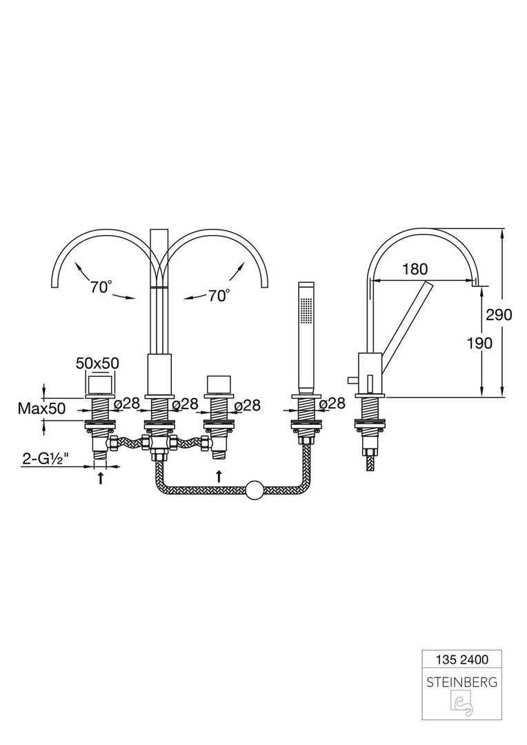 Steinberg Wannen-4-Loch-Armatur Serie 135 Ausladung 180 mm, chrom, schwenkbarer Schwallauslauf
