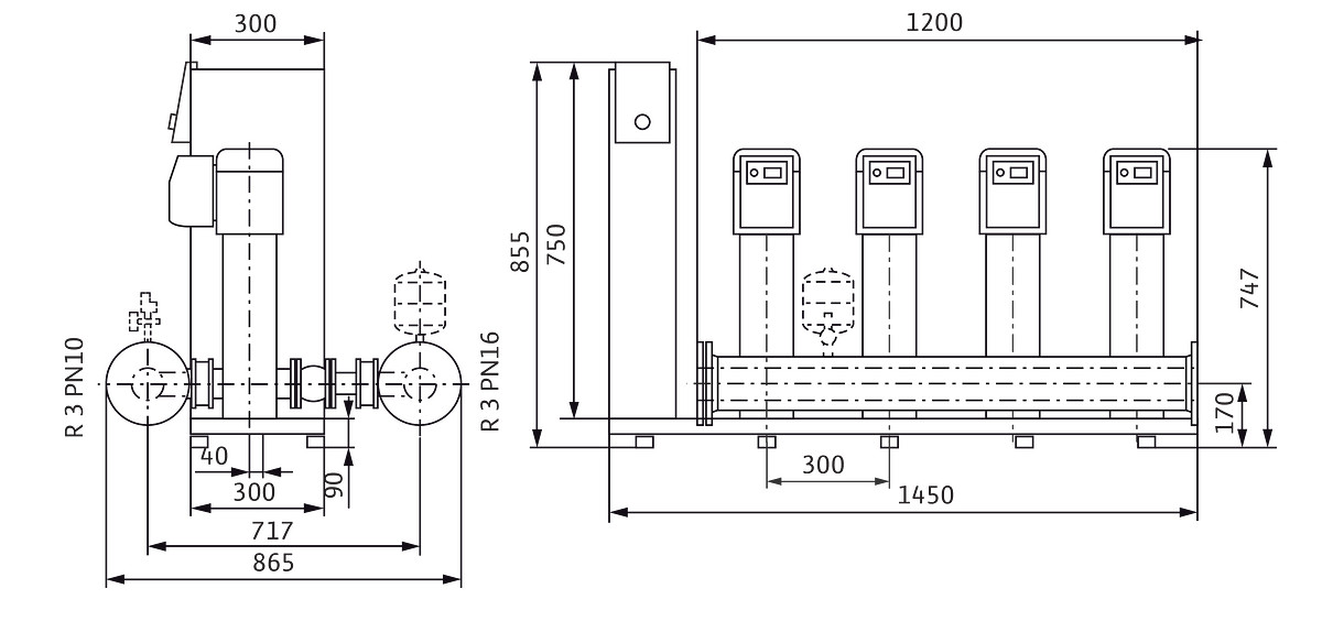Anschlussfertige Wasserversorgungsanlage mit 2-4 parallel geschalteten, vertikal angeordneten, Edelstahl-Hochdruck-Kreiselpumpen, normalsaugend, der Baureihe Helix VE, mit integriertem luftgekühlten Frequenzumrichter, mit Smart Controller, zum Einsatz für vollautomatische Wasserversorgung und Druckerhöhung im Zulaufbetrieb aus dem öffentlichen Wassernetz oder einem Tank für private, kommerzielle, industrielle und kommunale Anwendungen (z. B. Wohngebäude, Büro, Verwaltungsgebäude, Hotels, Krankenhäuser, Handwerk, Industrie, Wasserversorgungsunternehmen), Reservepumpe gemäß DIN 1988 und DIN EN 806 enthalten, zugelassene Fördermedien sind normalerweise Wasser, die die verwendeten Werkstoffe nicht angreifen (weder chemisch noch mechanisch) und keine abrasiven oder langfaserigen Bestandteile aufweisen wie Trinkwasser, Kühlwasser, Prozesswasser, Löschwasser (außer für Feuerlöschanlagen gemäß DIN 14462 und mit Genehmigung der örtlichen Brandschutzbehörden), mit Einbau- und Betriebsanleitung, integrierter Überlastschutz, Trockenlaufschutz und Wassermangelsicherung, mit automatischer Abschaltung