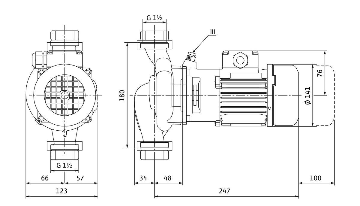 Trockenläuferpumpe in Inline-Bauart mit Verschraubungs- oder Flanschanschluss, zur Förderung von Heizungswasser (nach VDI 2035), Wasser-Glykol-Gemischen und Kühl- und Kaltwasser ohne abrasive Stoffe in Heizungs-, Kaltwasser- und Kühlwasseranlagen, Korrosionsschutz durch Kataphorese-Beschichtung, serienmäßige Kondensatablaufbohrungen in den Motorgehäusen und Laternen, Motor mit ungeteilter Welle, Standardmotor V1 mit Edelstahl-Steckwelle, Drehrichtungsunabhängige, zwangsumflutete Gleitringdichtung