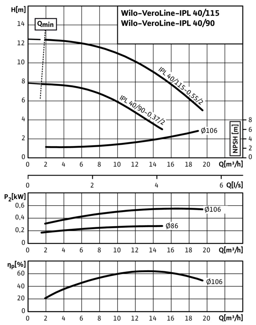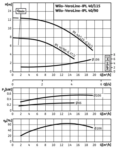 Wilo Trockenläufer-Standardpumpe VeroLine IPL 40/115-0,55/2, 0,55 kW, 2-polig