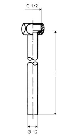 für Elektrospeicher, 2 Kupferrohre, einerseits mit Bördel und G 1/2 Überwurfmutter mit Dichtring, andererseits glatt