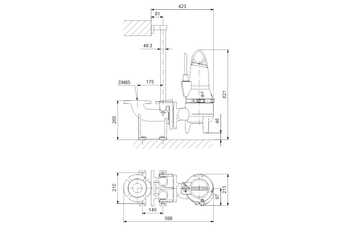3 x 400 V Direktanlauf, 2.8/3.1/3.8 A, Pumpe mit 10 m Kabel, freies Kabelende oder Schaltgerät mit Schwimmerschalter, Druckabgang Flansch DN 65, PN 10 mit/ohne Ex-Schutz, Drehzahl n= 2900 min¹