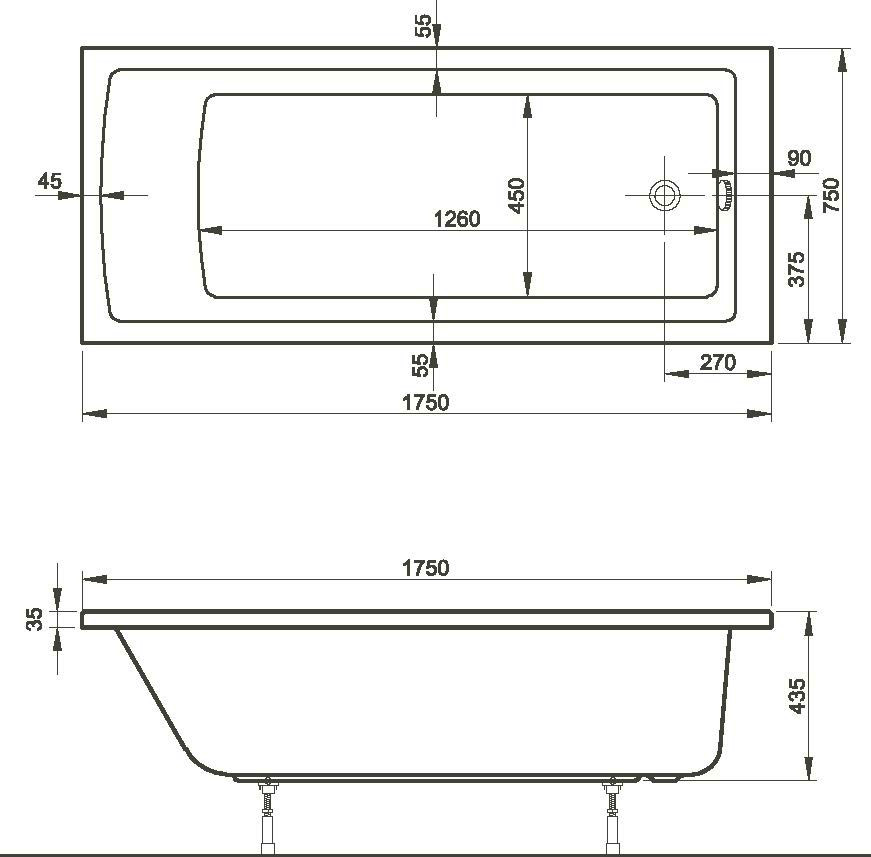 Höhe 435 mm, Sanitäracryl 4 mm, 1 Rückenschräge, Wassertiefe 320 mm (Ablauf bis Unterkante Überlauf), ohne Hahnlöcher, ohne Schürze, Ab-/Überlaufgarnitur ist nicht im Lieferumfang enthalten, Inhalt 155/175/203/192/210/192/210 l