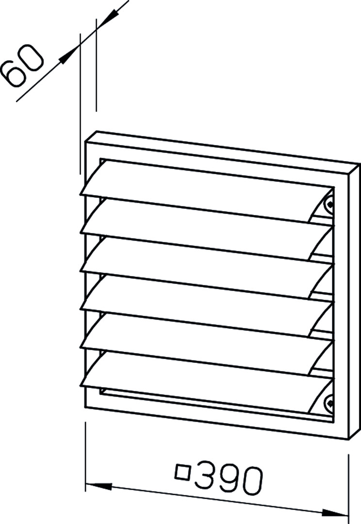 zum Aufsetzen vor Luftein- und Austrittsöffnungen in Fassaden, korrosions- und wetterbeständig, Rahmen mit feststehenden Lamellen aus UV-beständigem und bruchfestem Kunststoff, hinterlegtes Maschengitter aus verzinktem und kunststoffbeschichtetem Stahl (Maschenweite 8 mm), Montage durch Dübel