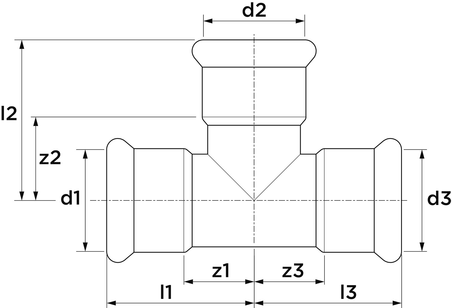 AIPS T-Stück VSH XPress R2714G 108 mm, Edelstahl, HNBR-O-Ring, M-Kontur