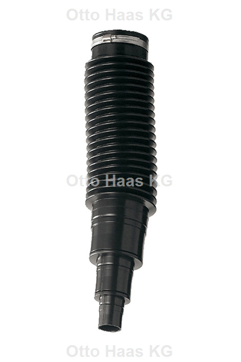 flexible Verbindung zwischen Dunsthut und Fallrohr, Überbrückung von Längendifferenzen und gleichen Achsversätzen von max. 45° bis zur Lotrechten, geeignet für dachseitigen Anschluss DN 100, witterungs-, alterungs- und formbeständig