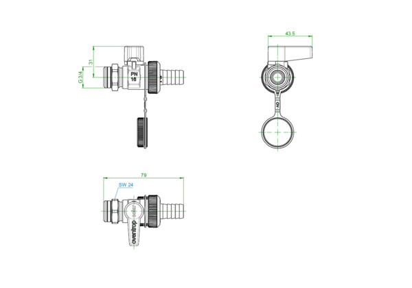 | Anschluss 2 | Abschraubbare Schlauchtülle |