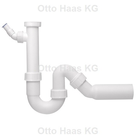 HAAS Spülensiphon DN 50, 1 1/2", mit 45Grad Ablaufbogen und Geräteanschluss, Polypropylen, weiß