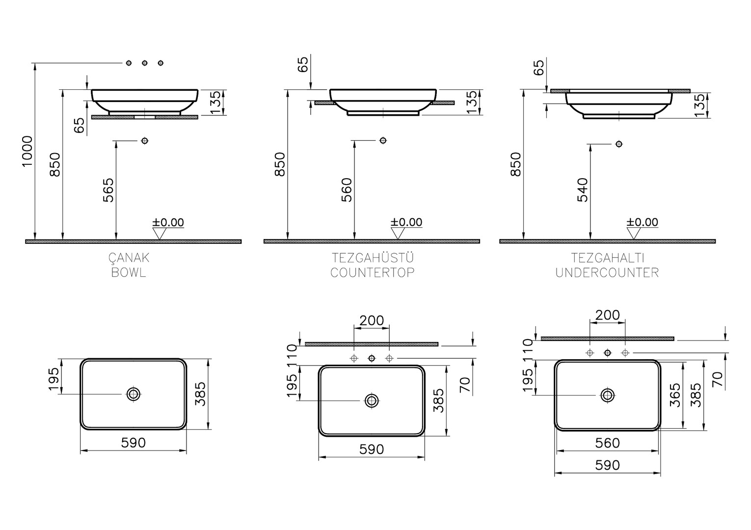 VitrA Bad Aufsatzschale Options Water Jewels 56x36,5/59,5x39,5cm, ohne Überlauf und Hahnlochbank, weiß VC W57496