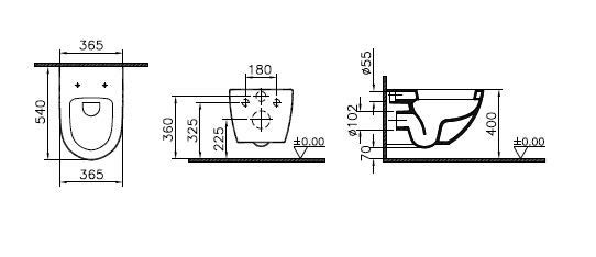 VitrA Bad Wand-Tiefspül-WC Sento 36,5x54cm, 3/6 l, mit geschlossenem Spülrand, weiß VC W58502