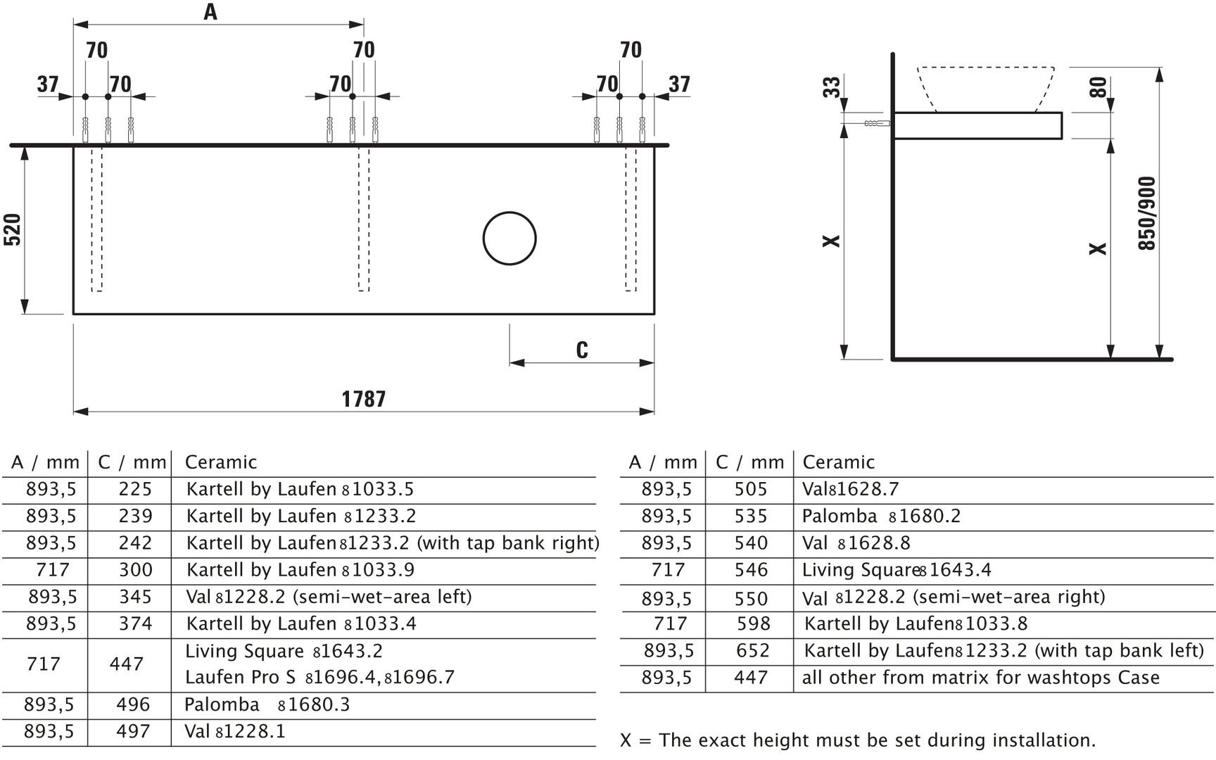Laufen Waschtischplatte CASE 8 x 179 x 52 cm, mit Ausschnitt zentriert, weiß W491578