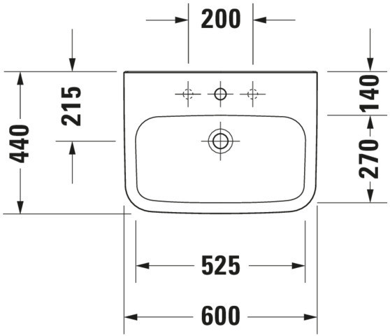 Duravit Waschtisch DuraStyle Med 60 x 44 cm, weiß WonderGliss, ohne Hahnloch und Überlauf, mit Hahnlochbank W32419