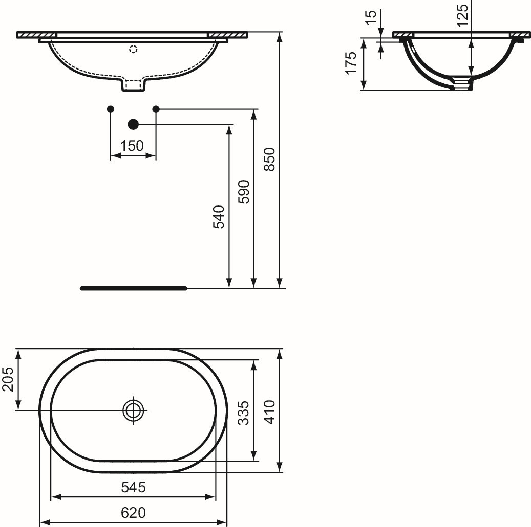Ideal-Standard Unterbauwaschtisch Connect 62 x 41 cm, weiß, oval, ohne Hahnloch, mit Überlauf