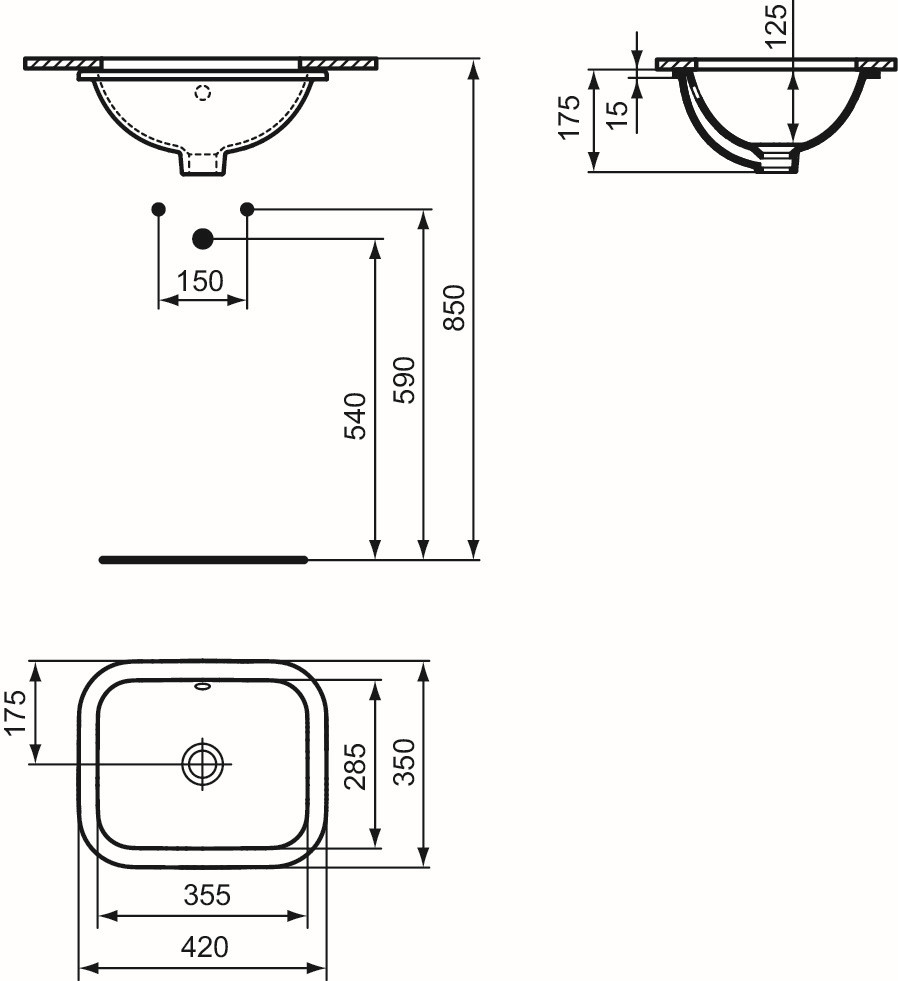 Ideal-Standard Unterbauwaschtisch Connect 42 x 35 cm, weiß IdealPlus, rechteckig, ohne Hahnloch, mit Überlauf