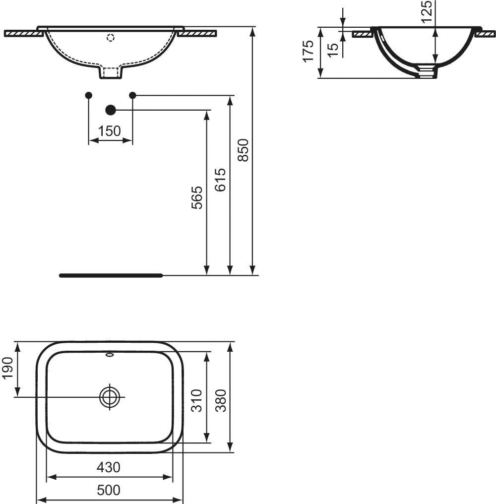 Ideal-Standard Einbauwaschtisch Connect 50 x 38 cm, weiß, rechteckig, ohne Hahnloch, mit Überlauf W34101