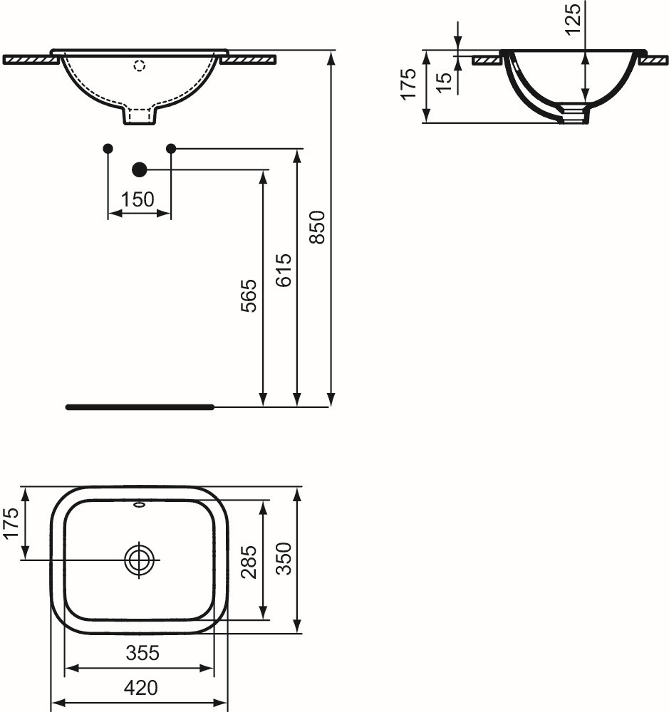 Ideal-Standard Einbauwaschtisch Connect 42 x 35 cm, weiß, rechteckig, ohne Hahnloch, mit Überlauf