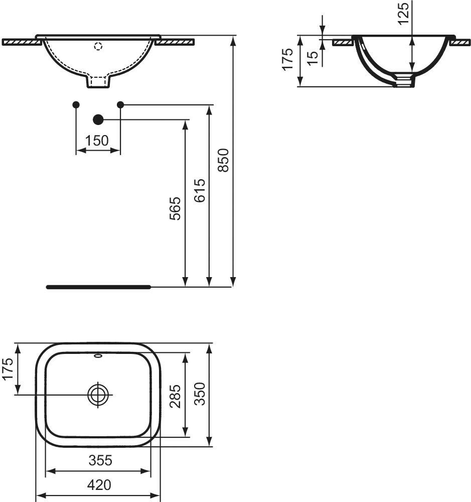 Ideal-Standard Einbauwaschtisch Connect 42 x 35 cm, weiß, rechteckig, ohne Hahnloch, mit Überlauf W34097