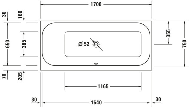 Duravit Rechteck-Badewanne Happy D.2 170 x 70 x 46 cm, Einbauversion, 1 Rückenschräge links, weiß W206962