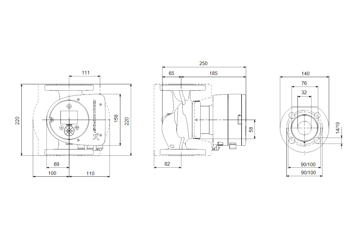 Grundfos Umwälzpumpe MAGNA3 32-100FN, 220 mm, DN 32, PN 6/10, Edelstahl W825331