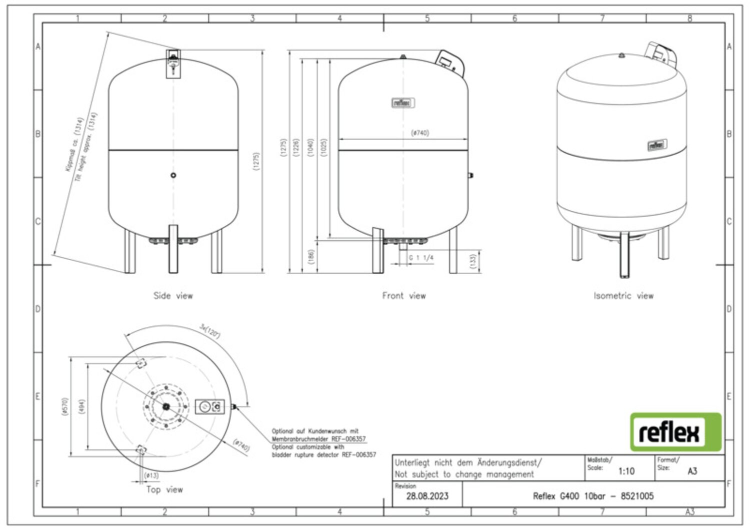 Reflex Membran-Druckausdehnungsgefäß G 400, 10 bar/70 °C, G 1 1/4, grau W817083