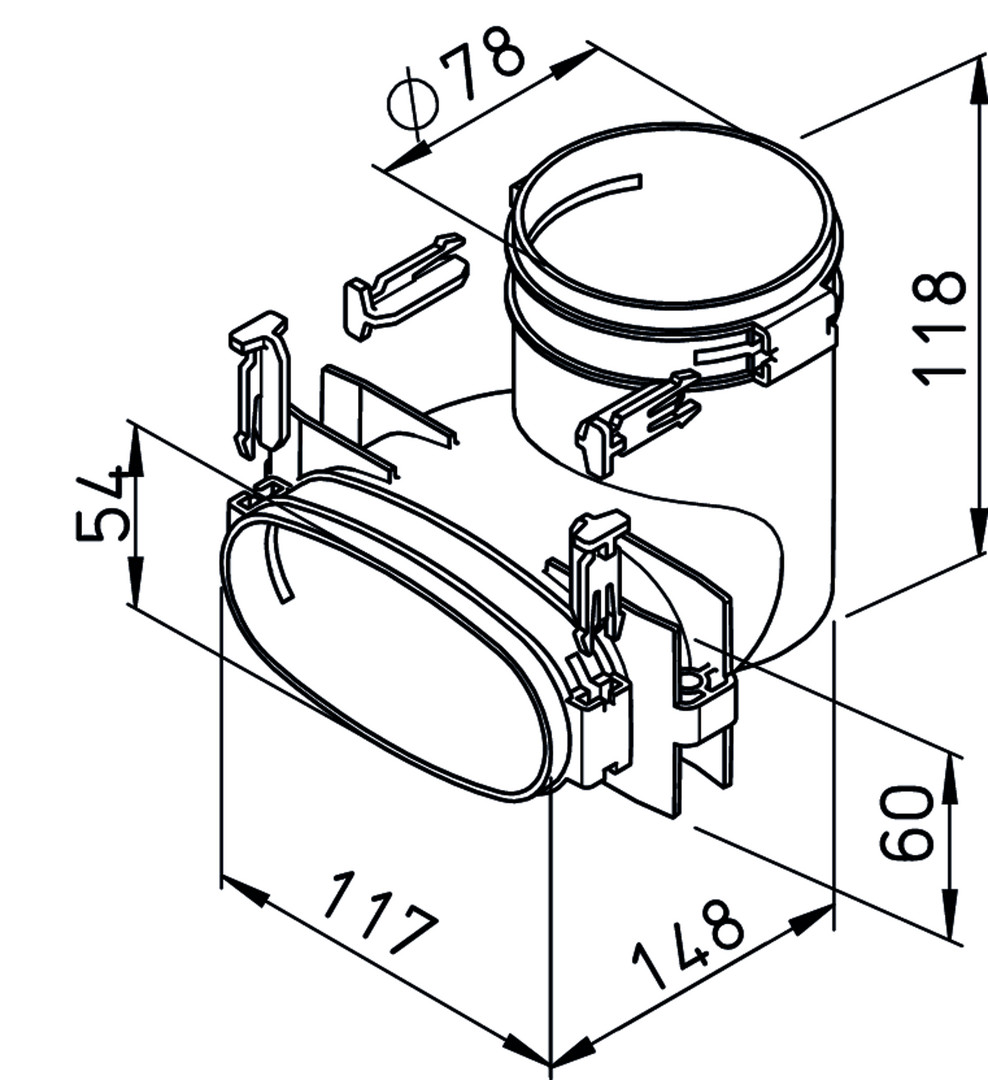Helios Übergangsstück FRS-ÜV 51-75, vertikal, von Rohr Oval 51 auf Rund 75 W845188