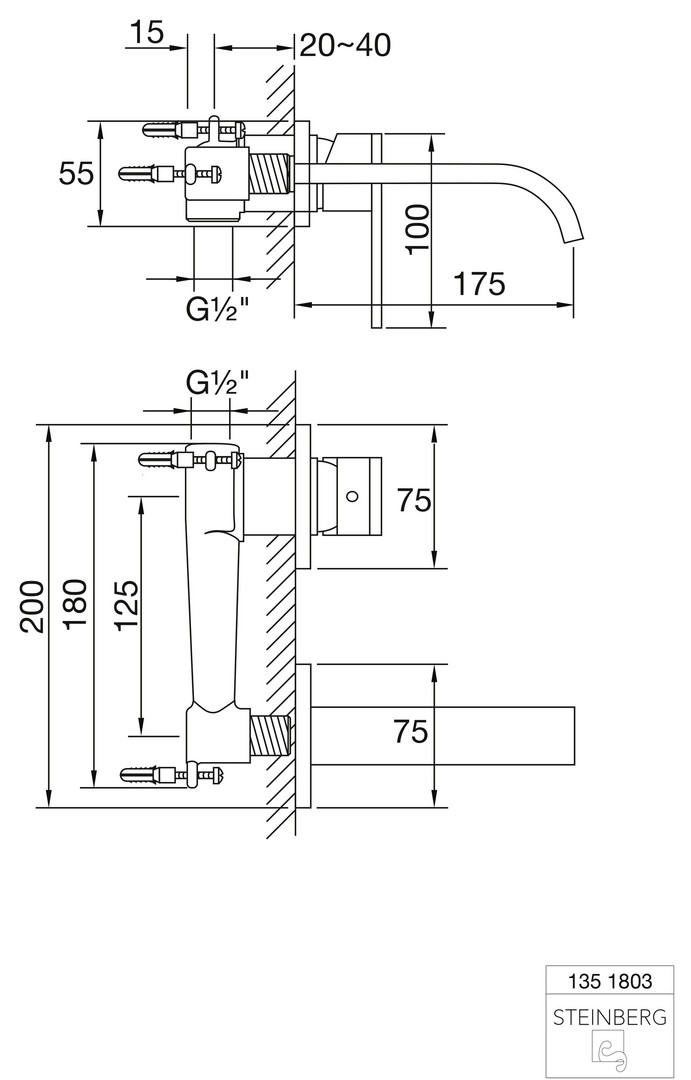 Steinberg Fertigmontageset Serie 135 Ausladung 175 mm, chrom, mit Einzelrosetten und Einbaukörper