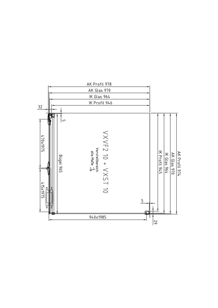 | Einbaubreite Tür für die Montage mit Seitenwand | 985 - 1000 mm |