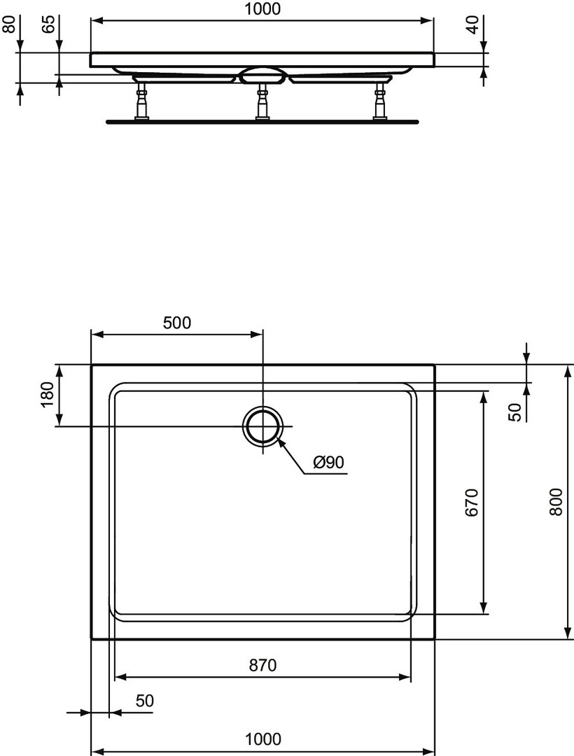 Ideal-Standard Rechteck-Duschwanne Hotline Neu 100 x 80 x 8 cm, weiß