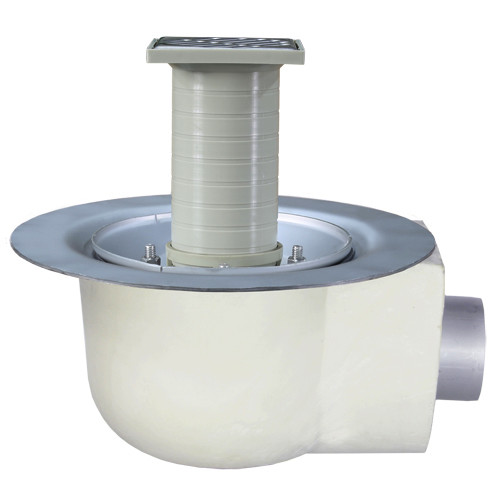 LORO Versal Komplett-Balkonablauf Serie K DN 70, Auslauf senkrecht, Klemmflansch, mit Wärmedämmung, einteilig, Edelstahl W558367