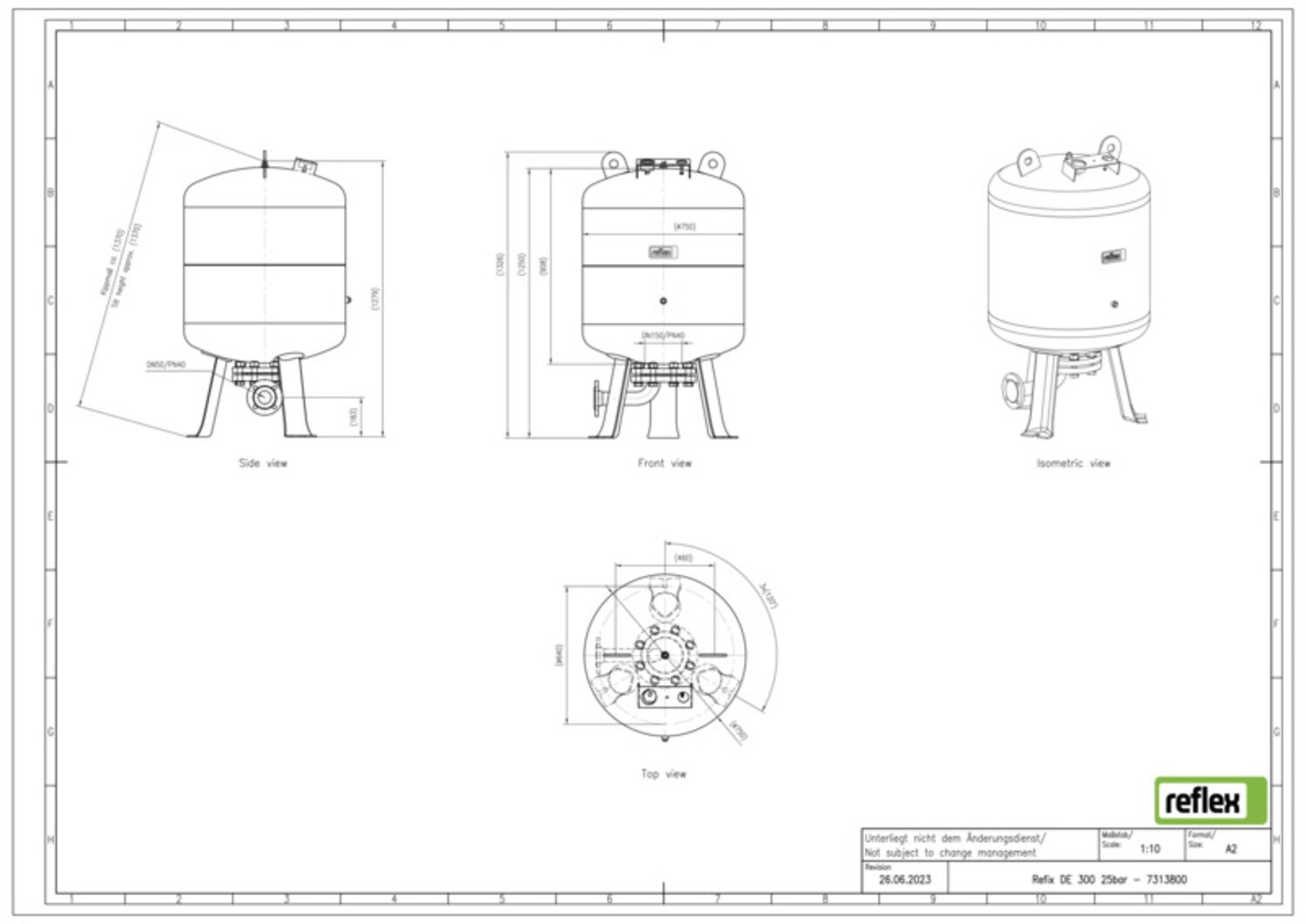 Reflex Membran-Druckausdehnungsgefäß Refix DE 300, 25 bar/70 °C, DN 50/PN 40
