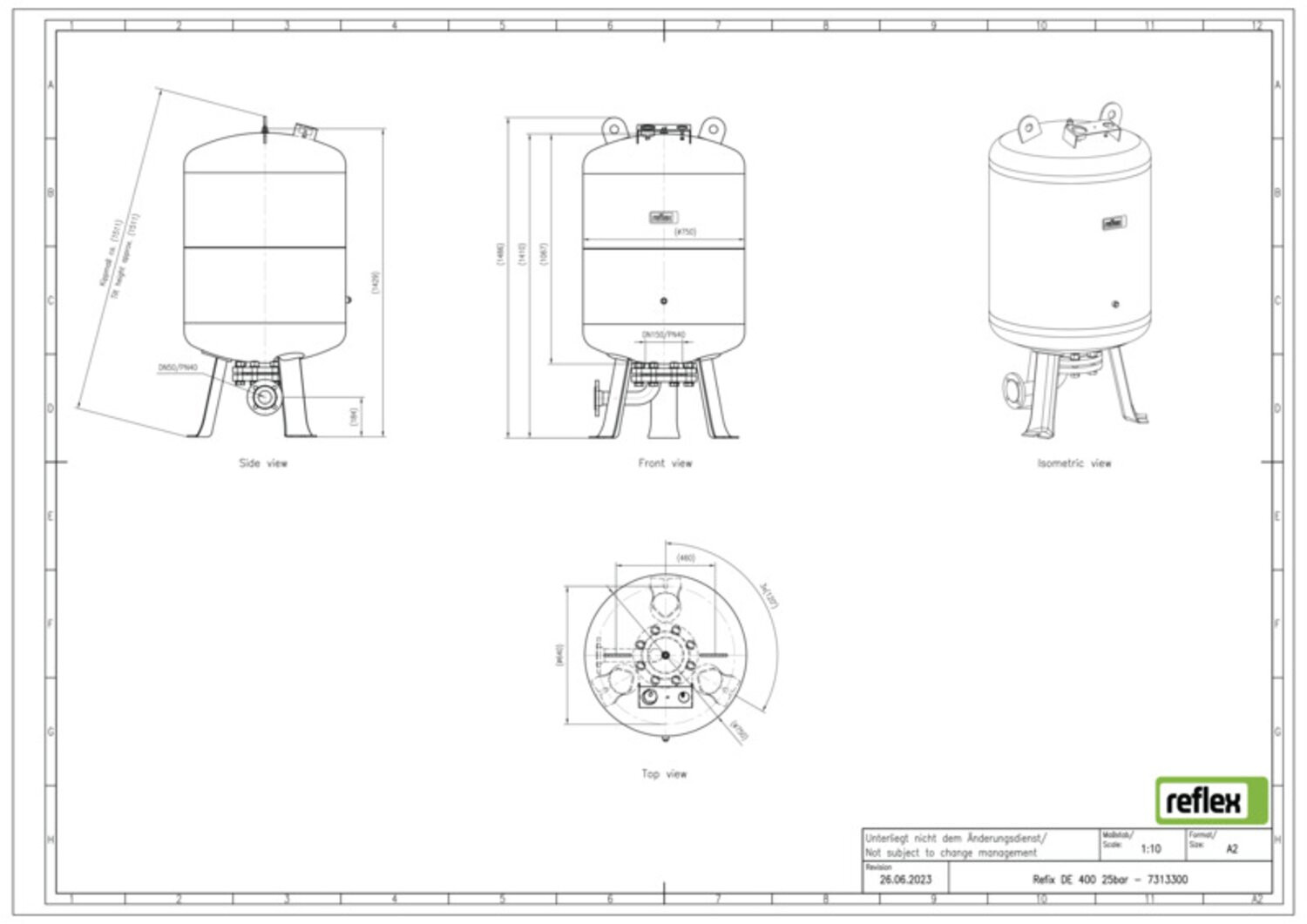 Reflex Membran-Druckausdehnungsgefäß Refix DE 400, 25 bar/70 °C, DN 50/PN 40