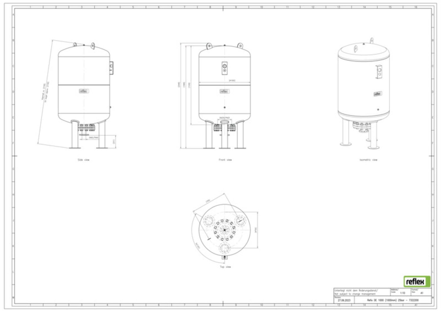 Reflex Membran-Druckausdehnungsgefäß Refix DE 1000, Ø 1000/25 bar/70 °C, DN 65/PN 40