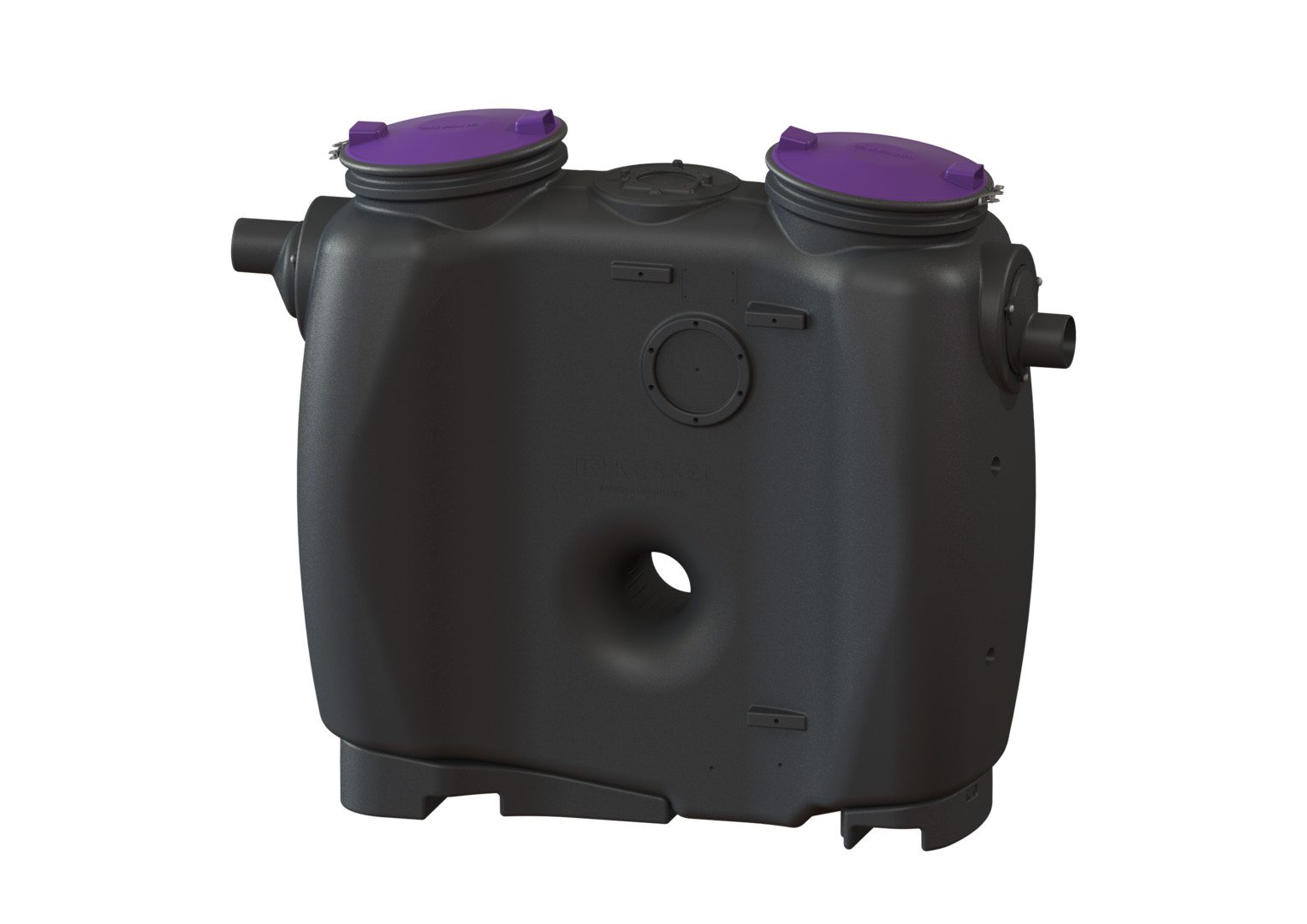 aus PE, Einbau in frostgeschützten Räumen, die Fließrichtung kann durch Austauschen des Zu- undnAblaufstutzens geändert werden, Anlage komplett montiert