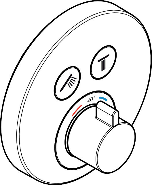 Thermostatkartusche zur Regelung der Temperatur, Start/Stop Ventil zur Bedienung der Verbraucher, Betriebsdruck min.1/max. 10 bar, Sicherheitssperre bei 40 °C, Temperaturbegrenzung einstellbar, Anschlussart Grundkörper