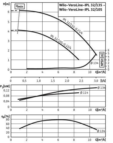 Wilo Trockenläufer-Standardpumpe VeroLine IPL 32/105-0,12/4, 0,12 kW, 4-polig W828895