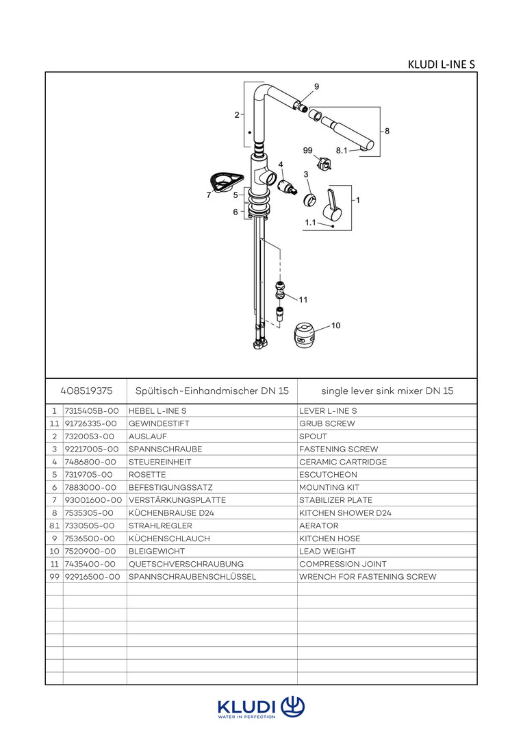 KLUDI L-INE S Spültisch-Einhebelmischer geschlossener Hebel seitlich, schwenkbarer, herausziehbarer Auslauf, chrom W325253