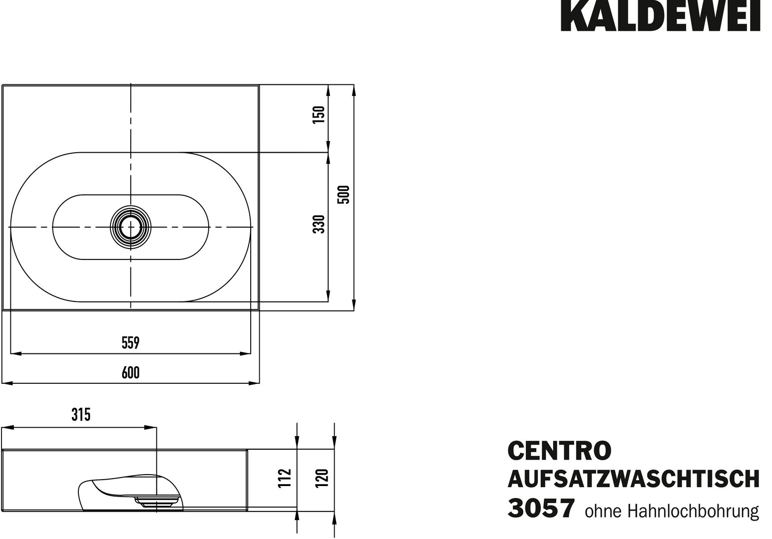 Kaldewei Aufsatz-Waschtisch CENTRO 3057 60x50cm, ohne Überlauf/Hahnloch, Perl-Effekt, weiß