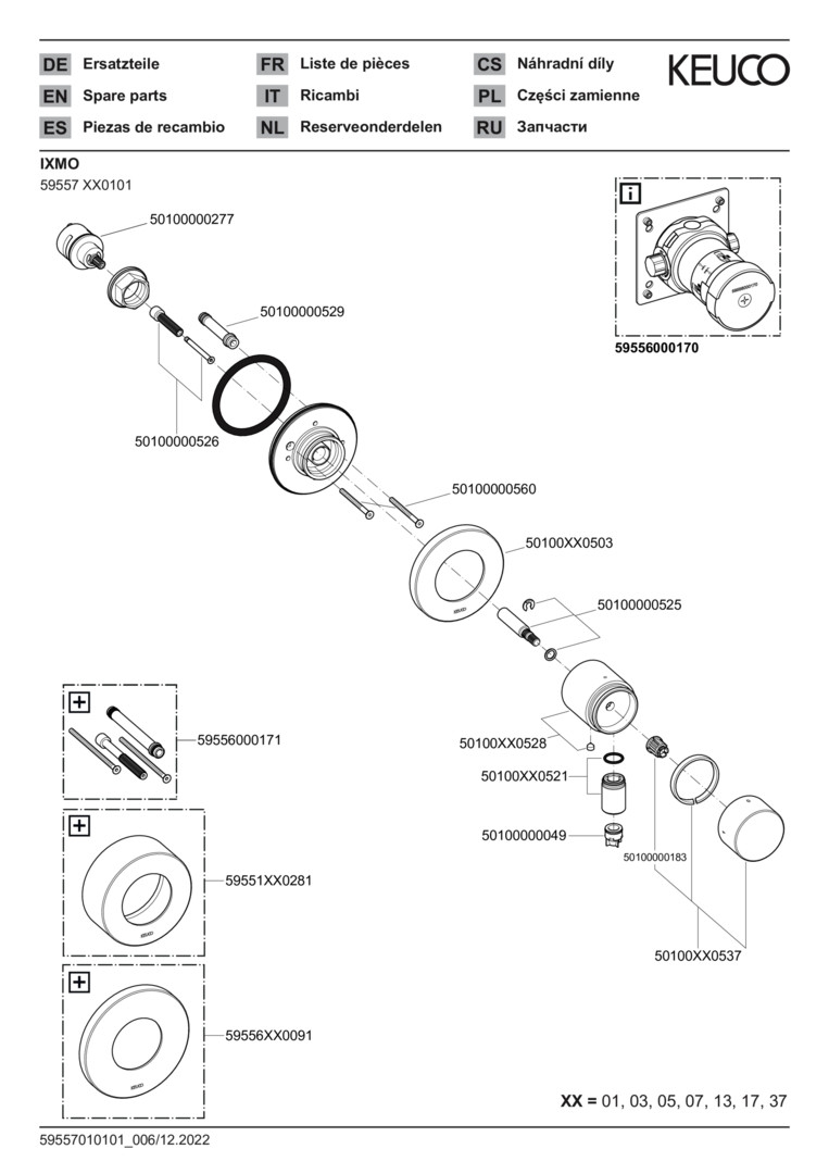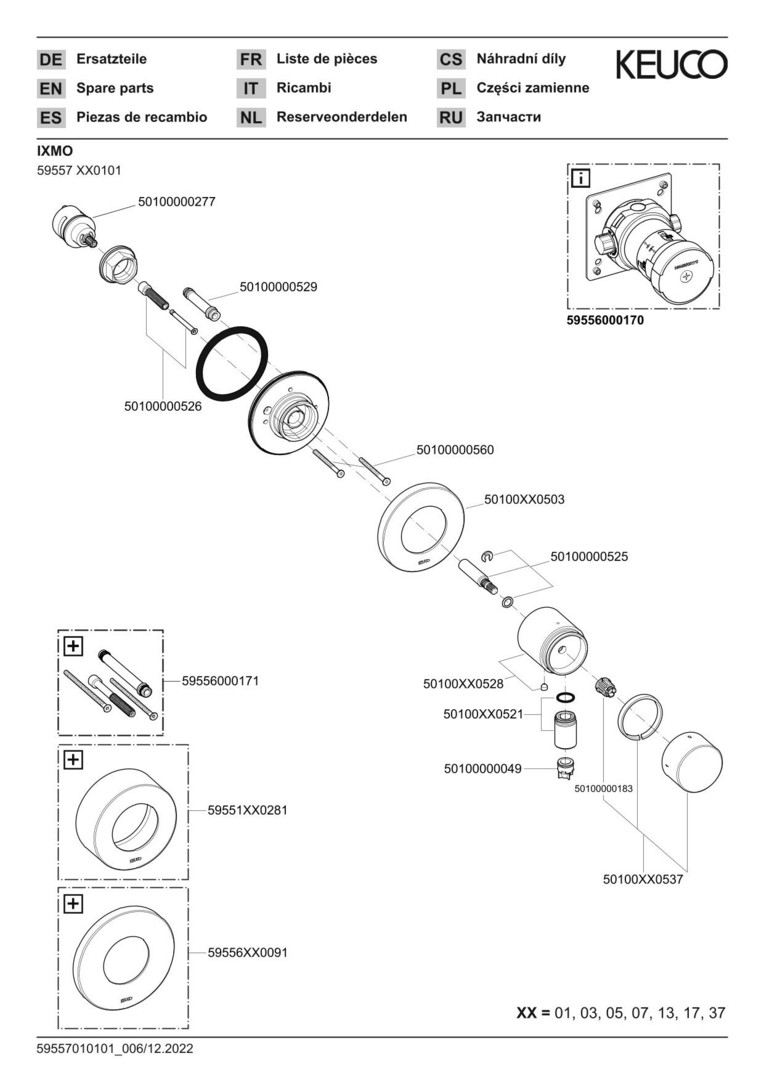 KEUCO Fertigmontageset IXMO UP-2-Wege-Ab-/Umstellventil, Schlauchanschluss, Griff Pure, rund, verchromt