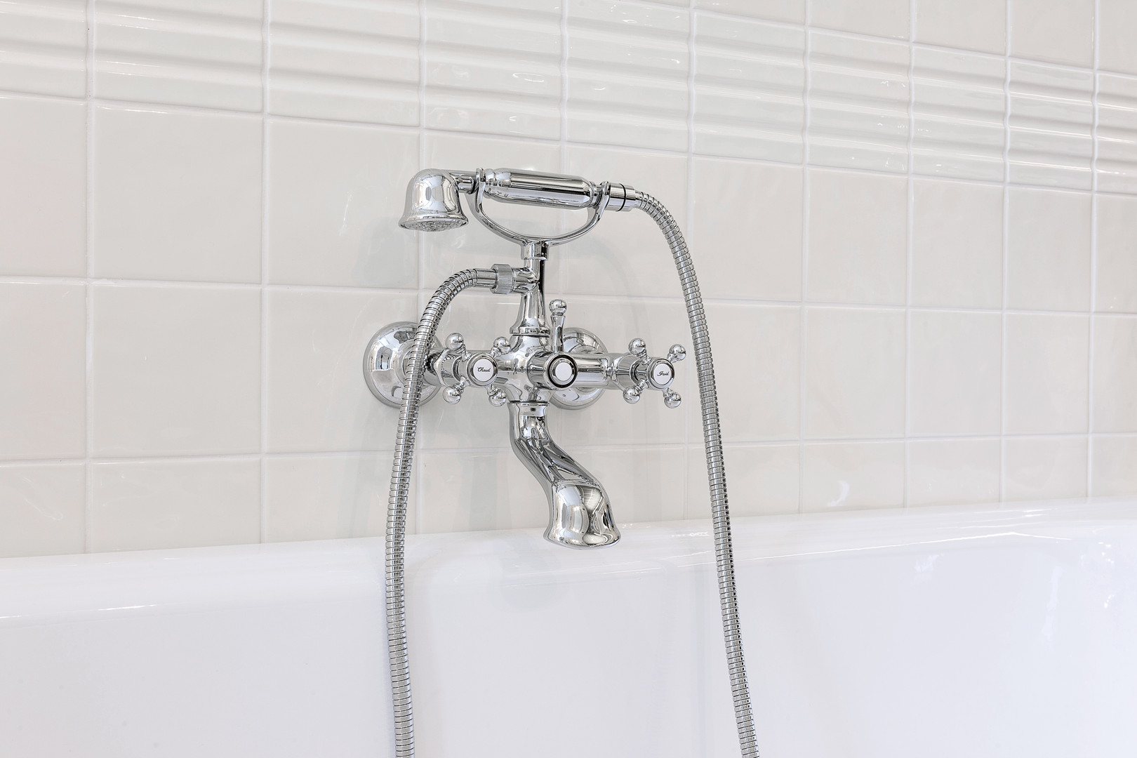 Herzbach Wannen-Zweigriffarmatur Anais mit Duschgarnitur, chrom