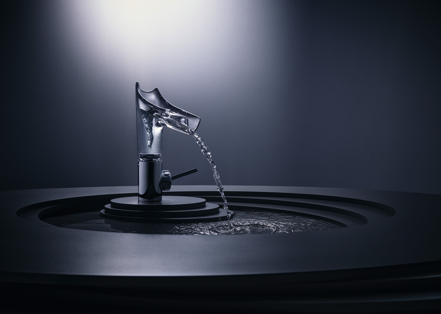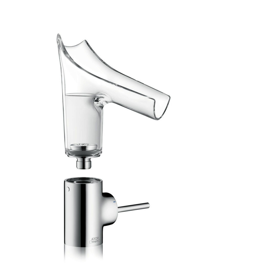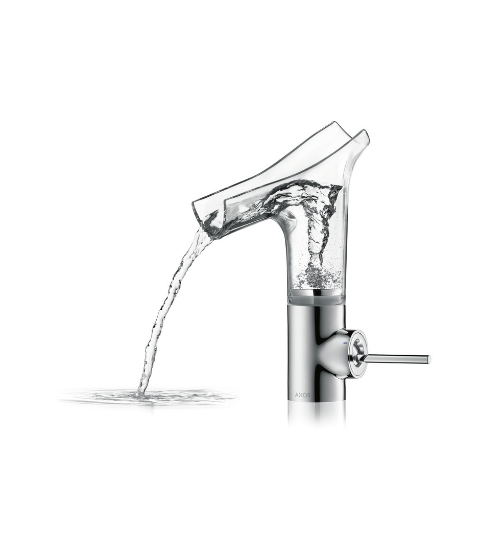 hansgrohe Waschtisch-Einhebelmischer Axor Starck V 140 mit Glasauslauf, unverschließbare Ablaufgarnitur, chrom