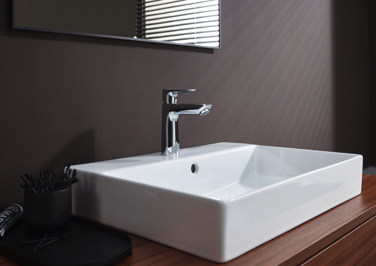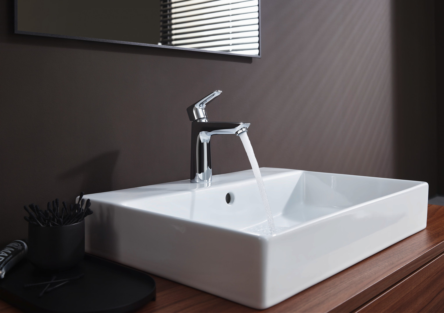 ComfortZone 110, Kaltwasser in Mittelstellung, Ausladung 112 mm, Auslaufhöhe 104 mm, Normalstrahl, max. Durchflussmenge bei 3 bar 5 l/min, Keramikmischsystem, Temperaturbegrenzung einstellbar, für Durchlauferhitzer geeignet, Anschlussart G 3/8 Anschlussschläuche, Anschlussgröße DN 15, EcoSmart, AirPower Technologie, Quick Clean Antikalksystem, nicht für Aufsatzwaschtische geeignet