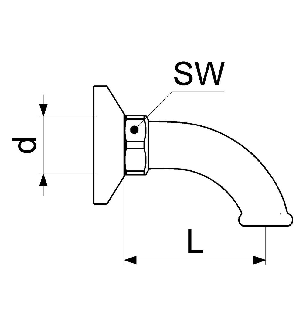 Schlösser Auslaufbogen 15-150 mm, mit AG und Rosette, poliert verchromt W535896