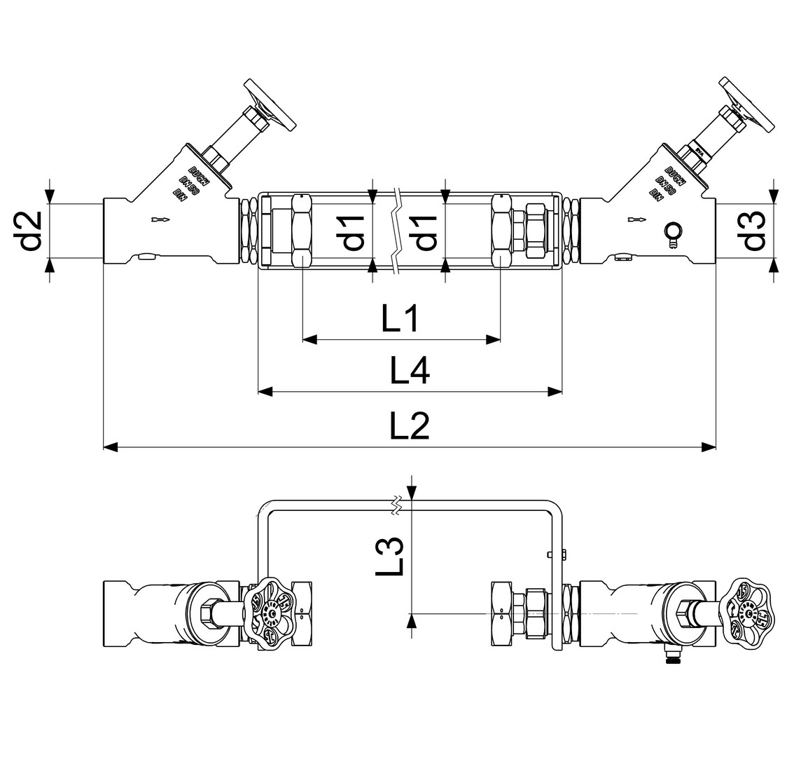 Schlösser Wasserzähler-Einbaugarnitur 2205 2" Qn 10, starr, waagerecht, Edelstahl, Bügel geschlossen