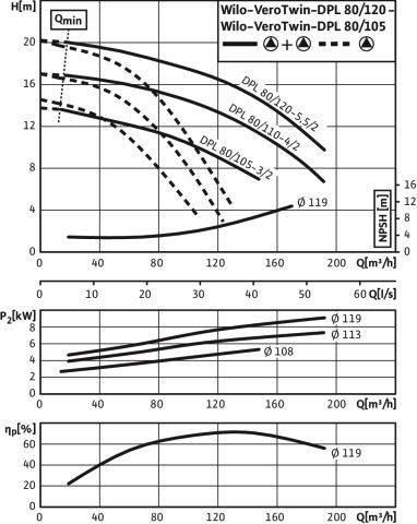 Wilo Trockenläufer-Standarddoppelpumpe VeroTwin DPL 32/95-0,55/2, 0,55 kW, 2-polig W828899