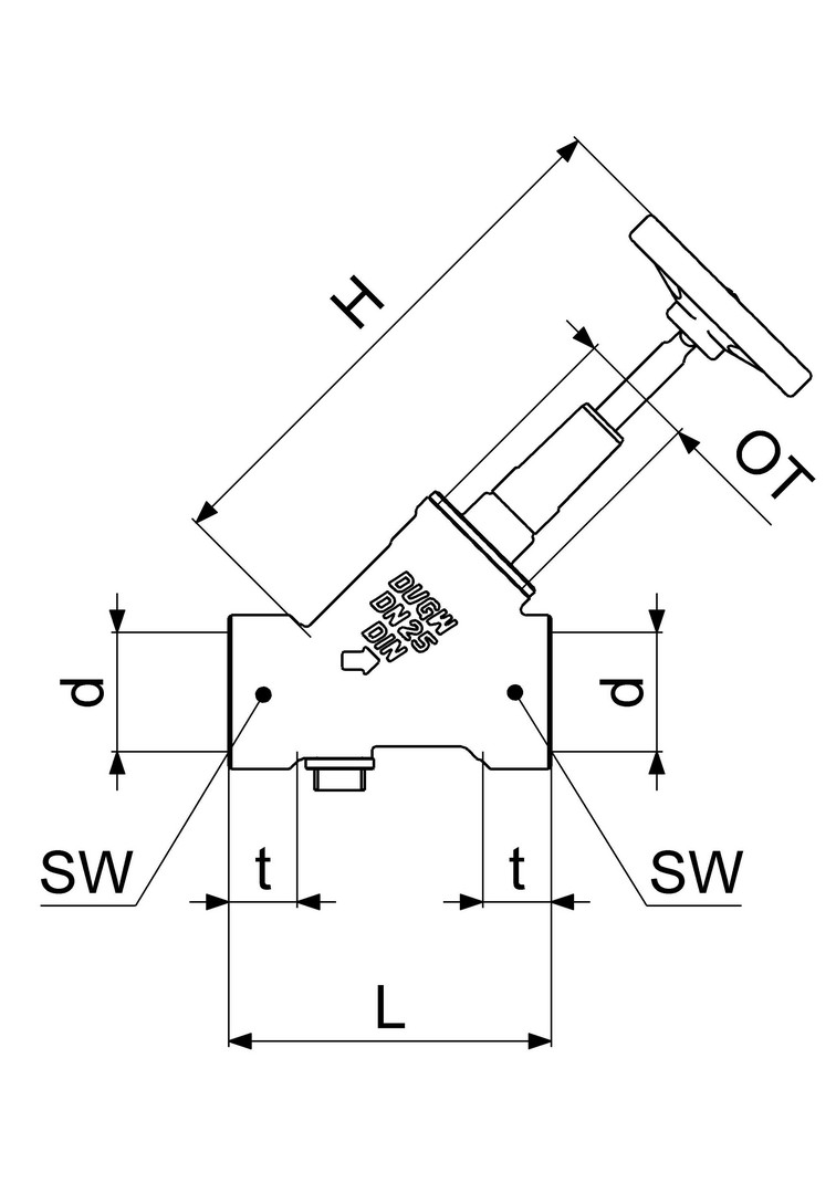 Schlösser KFR-Ventil PR1615 DN 20, Rp 3/4, ohne Entleerung, steigende Spindel W537697
