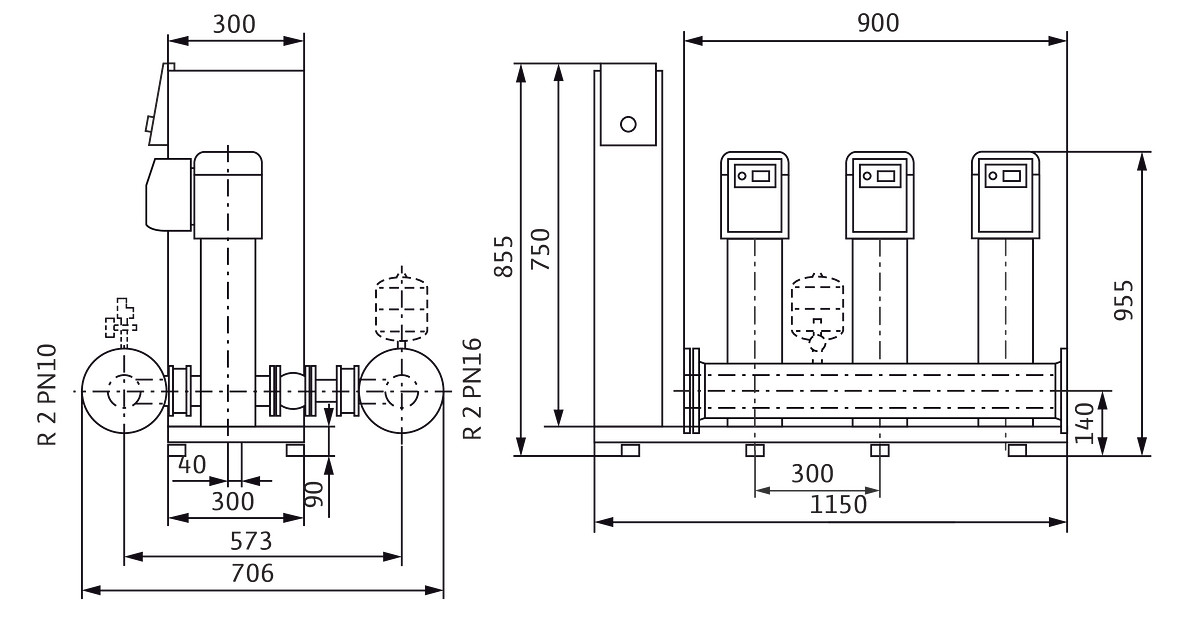 Anschlussfertige Wasserversorgungsanlage mit 2-4 parallel geschalteten, vertikal angeordneten, Edelstahl-Hochdruck-Kreiselpumpen, normalsaugend, der Baureihe Helix VE, mit integriertem luftgekühlten Frequenzumrichter, mit Smart Controller, zum Einsatz für vollautomatische Wasserversorgung und Druckerhöhung im Zulaufbetrieb aus dem öffentlichen Wassernetz oder einem Tank für private, kommerzielle, industrielle und kommunale Anwendungen (z. B. Wohngebäude, Büro, Verwaltungsgebäude, Hotels, Krankenhäuser, Handwerk, Industrie, Wasserversorgungsunternehmen), Reservepumpe gemäß DIN 1988 und DIN EN 806 enthalten, zugelassene Fördermedien sind normalerweise Wasser, die die verwendeten Werkstoffe nicht angreifen (weder chemisch noch mechanisch) und keine abrasiven oder langfaserigen Bestandteile aufweisen wie Trinkwasser, Kühlwasser, Prozesswasser, Löschwasser (außer für Feuerlöschanlagen gemäß DIN 14462 und mit Genehmigung der örtlichen Brandschutzbehörden), mit Einbau- und Betriebsanleitung, integrierter Überlastschutz, Trockenlaufschutz und Wassermangelsicherung, mit automatischer Abschaltung
